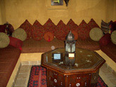 (写真:右) 砂漠のテントをイメージしたロビー。空調完備なので快適です