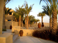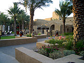 (写真:右) ホテル中心に位置している中庭はそのまま砂漠へと続いています