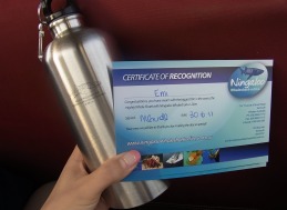 写真右:ショップより,ジンベイシュノーケルの証明書&水筒をもらいました.
