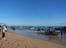 小舟に乗り込む時にじゃぶじゃぶ海の中に入っていきますので,濡れてもいい服装&サンダルでご参加ください.