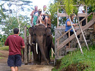 ウブドからは約6キロ、クタからは約27キロの距離にあるのどかな村です。 どこまでも続く田園風景を走り、山道を進むと明るく開けた頂上付近に到着。 このサンゲェ村で体験出来るのが、アユンリバー社主催の 『エレファントショートライド』 。