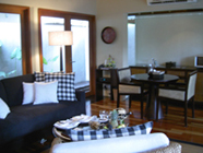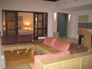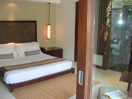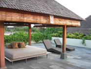 スミニャックのプティタンガ通りまで歩いて10秒。徒歩圏内にバーやHu’uやLiving Roomなどのお洒落なレストランやビーチもあり便利です。キッチン・リビングルーム・DVD、CDプレーヤーも付いていて、まるでショールームのようなインテリアです。部屋の2階部分はガゼボとベッドチェアがあり、日光浴もできます。05年4月オープンした新しいリゾートです。若いカップル、ご友人の方にお勧めです。