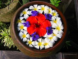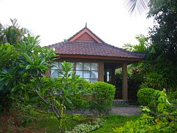庭がとても整っており、中庭のあちこちにはフラワーデコレーションがされていました。また、敷地内には農園もあり、バナナ、マンゴ、ココナッツ、ランブータン、グアバ、ジャックフルーツ、ライムなどの果物や、トマト、とうがらし、人参、キャベツ、長ねぎ、かぼちゃ、茄子などの野菜類の有機栽培をしており、当ホテルの食材として利用されております。