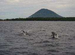 デッキに出てみるとイルカの群れが見えるじゃないですか!すごいすごい!!