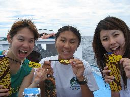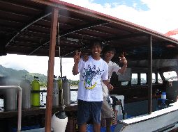 今回一緒に潜ったのが、インドネシア人のフェンディーとハニー(写真中央)。