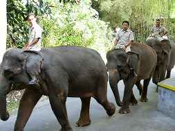写真中央:ショーの前に移動する象さん