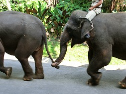 写真右:移動中もとっても仲の良い象さん
