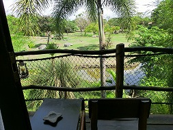 お部屋のベランダです。1階と2階のお部屋の造りは一緒で、違うのは景色だけ。2階がデラックスです。それでも、どうせなら2階で動物たちを見たいですよね。