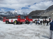 コロンビア大氷原では世界でココと南極にしかない雪上車に乗って、氷河の上へ!氷河の上に立ち、大自然のど真ん中に居ると、自分のちっぽけさを感じます。ボーっとできた時間でした。
