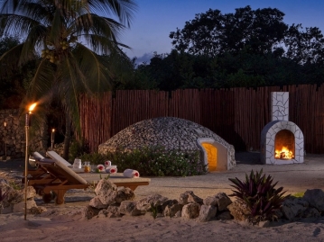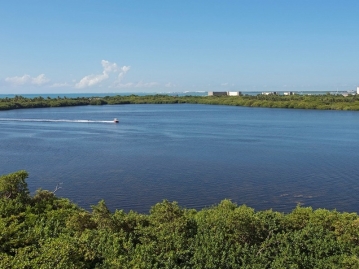 前後でマングローブに囲まれたラグーンとカリブ海の景色が楽しめる立地。