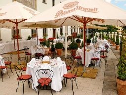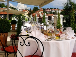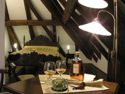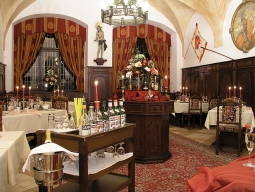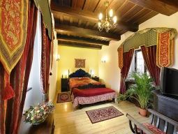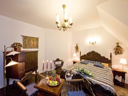街の中心部、聖ヴィート教会に隣接して建つホテル。白いお城のような外観。客室も中世風で、梁がむき出しになった天井だったり、アンティークな木製家具やシャンデリアなどを配し趣があるが、元々は中世の修道院の建物で、派手な雰囲気はない。ネイルスタジオを含むビューティショップやアートギャラリーあり。