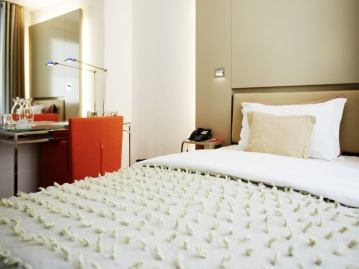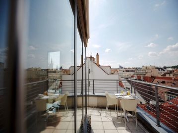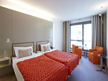飾り過ぎず、少し大人びた雰囲気を併せ持つ4つ星のデザイナーズホテルです。旧市街広場とフローレンツの真ん中あたりに位置し、どこへ行くにも便利な立地良しのホテルです。オレンジの差し色が映え、思わずかわいいがこぼれる素敵な内装となっています。"
