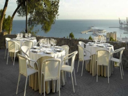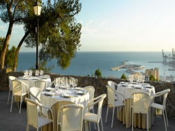 マラガの中心地から約3KMのヒブラルファロの城塞の すぐ近くに建つパラドール。マラガの街と海を見渡す眺望が素晴らしい。