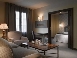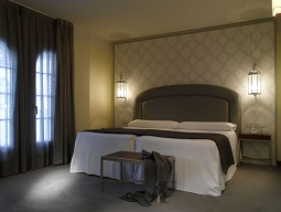 バルビカン・オブ・ザ・ローマン・ウォールの隣に建つホテル。ロビーはシックなタイル張りのゆったりとした空間でエレガントな雰囲気。客室は白壁にダークブラウンの家具と群青色のソファーが見事にマッチし、アイアンワークのチェアーなどアンダルシアらしさを感じさせる内装。プールエリアにも独特の雰囲気がある。