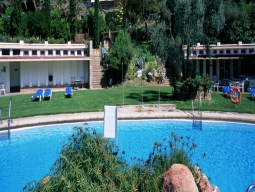 緑豊かな庭園には大きなプール、子供用プール、テニスコートも完備され、夏の週末の夜にはバーが営業されます。