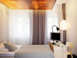 フィンランドを代表するデザイナー、アアルトの作品が随所に配されたホテル。ロビーやレストランにはアームチェアが置かれ、客室には家具はもちろん、アアルトの顔がプリントされたTシャツまであります。
