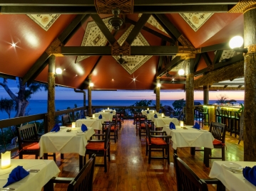 オープンエアでオーシャンビューのレストランでは、心地よい海風を感じながら食事を楽しむことができます。アクティビティは、カヤック、SUP、シュノーケリング、ダイビング(有料)、フィッシング(有料)などが楽しめます。