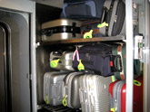 乗り込むのが遅かったので、棚の一番上しか空いてない、重過ぎる。。。