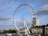 (写真:左:右) ガラス張りのゴンドラから街を一望できる「B.A.ロンドン・アイ」