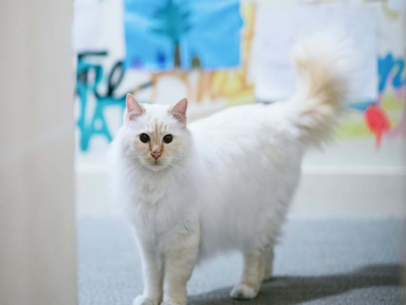 美しい白い毛並みが魅力の看板猫「ファラオン」にも運が良ければ会えるかも…!?