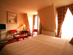 「ル・ヴィニョン」はマドレーヌ寺院の裏手にあり、フォーブルサントノレ通りや大型デパート、オペラ座も徒歩圏内という買物にも観光にも便利な立地。 お部屋は薄いベージュと白を基調にホテルのロゴと同じ赤がアクセントで使われ、温かい雰囲気。ホテルの外を歩いても、お部屋で過ごしてもおしゃれなパリジェンヌ気分を味わえるおすすめホテルです