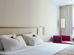 日本の店舗デザインも手がけるフランス人デザイナーの設計によるホテル。正面玄関を入り、右手には30年代アンティーク柄のピンクの壁紙が目を引くバー兼朝食サロンがある。 天井からの自然光も気持ちいいこのバーは、時折TV撮影などでも使われるほど注目されている。客室内はシンプル&モダン。シャープな印象を受ける中、枕元に青リンゴ、バスタブにはアヒルのマスコットが置かれ、遊び心は忘れない。 サウナとフィットネスセンターも備え、場所は注目のオベルカンフ、便利なレピュブリック広場まですぐ