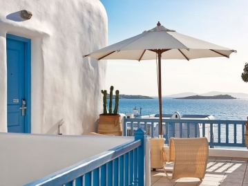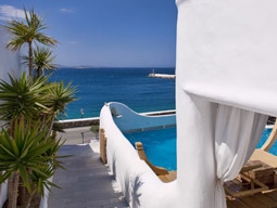 タウンエリアにあるミコニアン様式の可愛らしいホテル
