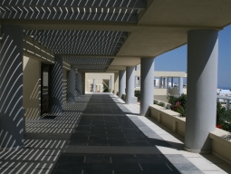 フィラタウンより少し離れていますが、10分ほどで歩いていくことができます。サントリーニ島には少ない施設・設備が充実したリゾートホテルです。断崖絶壁にはありませんが、その分ホテル内の施設はどこもひろびろとしていて、ゆったりと過ごすことができます。全室バスタブ付きで、室内はとてもスタイリッシュに統一されています。イーストビューのお部屋が静かで海の方を向いているのでおすすめです。
