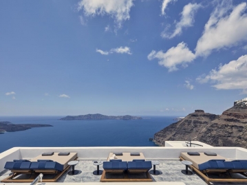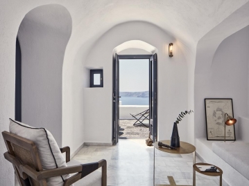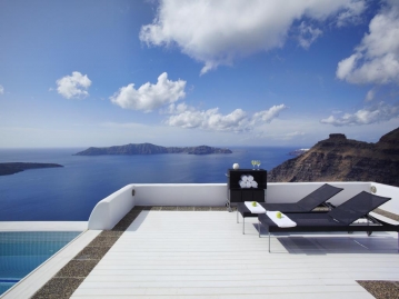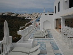 フィロステファニからフィラ方向へ少し歩いたところにあるホテル。とっても洗練されていてラグジュアリーな空間。最近人気が高まり、海外雑誌のロケなどでよく使われているそうです。客室には部屋番号ではなくホメロスの詩にちなんだ名前がついています。某人気ホテルのオーナーがサントリーニで一番素晴らしいホテルと評価しているとか・・・。