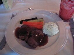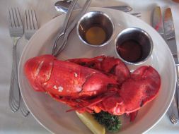 前菜、サラダ、大きなまるごと一匹ロブスター、ステーキ、デザートのフルコースで、豪華でボリューム満点のメニューです。