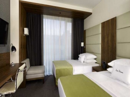 ザグレブ南東部エリアのビジネス地区、グリーンゴールド・ショッピングセンターより約100mのところに位置するホテル。モダンな客室はダークウッド調の家具に上品なファブリックが配されシックな雰囲気がただよっている。会議室は最大300名まで収容可能。パノラマの景色を望むフィットネスセンターでリフレッシュするのもよい。市内中心部まで約2km。バン・イェラチッチ広場へは約3.3km。ミマラ博物館までは約4.2km。ザグレブ国際空港から約12km。