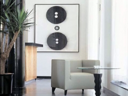 王宮の丘の麓、ドナウ川のほとりに建つモダンなホテル。対岸に国会議事堂を望む。アメリカのデザイナーによるユニークなインテリア。
