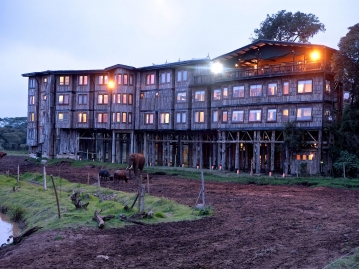アバーディア国立公園内にあり、ロッジ名どおり高い木の柱の上に建つ木造のロッジ。イギリスのエリザベス女王が木の上で王位を継ぎ女王になったことでも有名。