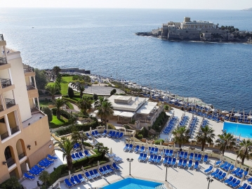 セント・ジュリアン地区の端、セントジョージズ湾に位置する「コリンシアホテルセントジョージズベイ」は地中海を見渡せる五つ星リゾートホテルです。