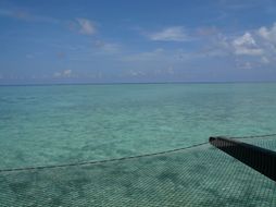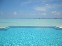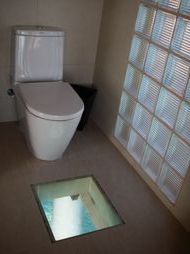 プールにくっついているバスタブ。 おおっと!?トイレ中に魚が見れる