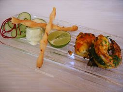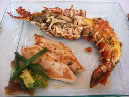 前菜のガーリックシュリンプ 顔より大きいロブスターに感動!