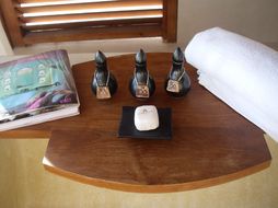 お茶の葉入りの石鹸は 珍しい水上コテージのスパ。