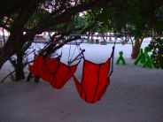 レストランや客室はもちろん、島内の案内板がレモンのような形だったり、プールの椅子がニコちゃん顔だったりと、細部まで拘ったデザインを発見する度にHAPPYになれます。もちろん、お子様の遊具もお洒落!!左の写真はキッズスペース。中央の写真は犬の形をした遊具。右の写真は赤ちゃん用ハンモック♪