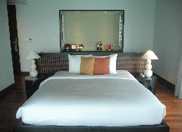 デラックスバンガローは1棟1室(2棟だけコネクティングルーム用に1棟2室)の70㎡。旧ラグーナ時代の面影が残るお部屋です。前と変わらずシッティングスペースとベッドスペースに数ステップの段差があり、ちょっとだけジュニアスイート感覚。バスルームは半屋外なので虫が苦手な人には・・・・という感じです。