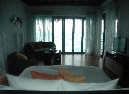 特に私が気に入ったのはベッドルームの海に面したガラス窓。ここは、テラスには繋がっておらず、すぐ下が海になっているんですが、大体のホテルは安全上の理由から開閉できない作りなのに、ヴェラッサルの水上ヴィラのガラス窓は開閉可能なんです!!(その為、12歳以下のお子様がご宿泊される場合は同意書にサインが必要です・・・)ガラス窓を全開にして、ベッドに寝転んで爽やかな風を浴びながら海を見たら、すっごいな気持ちいいんだろうな~と思いました。