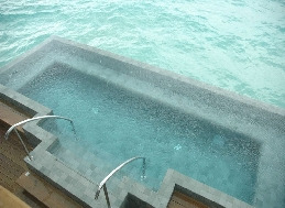写真右)ヨガパビリオンから見たリラグゼーションスペースのプール