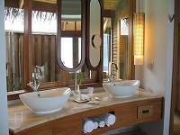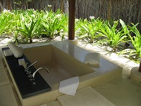 お部屋のアメニティなどは、水上コテージとほぼ同じですが、バスルームが屋外になります。