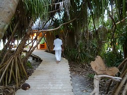 ソネバフシはまさにジャングルの島で海の真ん中にありながら緑がいっぱい。だから動物もたくさんいます。朝食レストランにはいつもうさぎがいるし部屋の前にはときどきにわとり親子がやってきます。部屋にカベチョロ(ヤモリ)がいたり道端には大きなとかげがいたり・・・