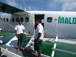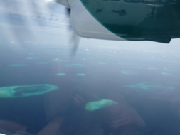ソネバフシへはマーレから水上飛行機で移動します。普通の飛行機との違いは海の上から出発して海に着水すること。低空を飛ぶので上空から海の眺めを楽しめます。「紅の豚」気分です。
