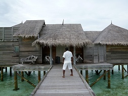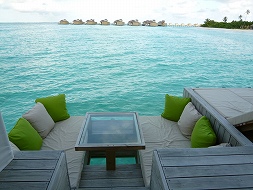 ソネバフシからソネバギリへは水上飛行機とボートで移動します。ソネバギリはマーレ空港からボートで10分、水上ヴィラはとっても広くて使い勝手もいい。人気リゾートであることに納得です。ハネムーンのゲストが多くてなんだかロマンティックな雰囲気です。