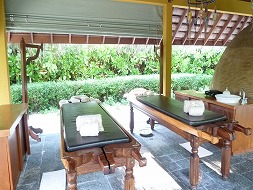 アーユルヴェーダ、シロダーラは水上のSPA部屋ではできないのですが、マッサージなどであれば水上で波の音を聞きながらというのもできるようです。
