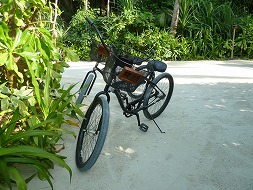 右の写真はフロントで自転車を借りれば、滞在中使いたい放題です。大きなリゾートなので、自転車は必須です。道を外れてしまうと、砂に埋もれて動けなくなってしまうので注意ですね。自転車はちょっと・・・という方やご年配の方はカートを呼べばすぐ来てもらえます。