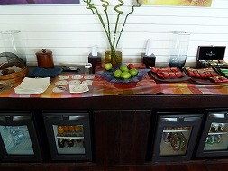 ここのリゾートはラウンジがありますので、クーラーが効いた室内で軽食・ドリンクが無料でご利用いただけるのでゆっくりしていただけます。通常の待合所は半屋外なのでもちろんクーラーは効いてません。