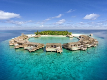 マーレ国際空港から水上飛行機で約40分程のラヴィヤニ環礁に位置し、約3ヘクタールの島全体は良質なハウスリーフに囲まれ、真っ白なビーチとのコントラストがまばゆいリゾートとなっております。モルディブに多く存在するオールインクルーシブプランを採用しているが、このクダドゥは一味違う。「エニシング・エニタイム・エ二ウエア」(何でも・いつでも・どこでも)をコンセプトに、ご滞在中のお食事とお飲み物・スパ・アクティビティなどのほぼ全てが料金に含まれるという究極のオールインクルーシブとなっております。肝心のお部屋も僅か15棟のみの水上ヴィラだけで形成されており、一部屋は300㎡もの広さを誇るプライべートプール付きのヴィラとなっております。モダンでシックなデザインのインテリアで統一され、自然あふれるモルディブらしい雰囲気と調和するように演出されたお部屋と抜群のハウスリーフ、それに加え究極のオールインクルーシブを兼ね備えたクダドゥは「過ごした時間のすべてが思い出に残る」そんなリゾートになっています。