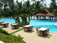 パングラオ島にある大型リゾートで、チェックインの後は、カートにてお部屋までのご案内となります。バンガローからは海を見渡すことができ、ジャグジーバスもございます。お部屋も基本がウッド調がメインでところどころで黄色を用いてお洒落な感じのお部屋です。今現在は、工事中ですが本格的なSPA施設を建設中で、完成すれば女性にもお勧めです。夕食時には、地元のかたがお客様の希望の曲を演奏してくれます。